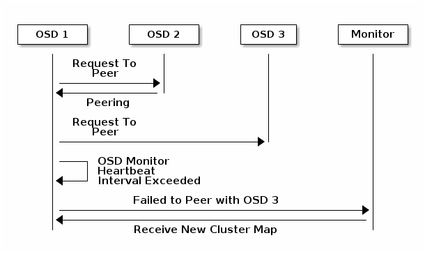 If a Ceph OSD Daemon cannot peer with any of the Ceph OSD Daemons defined in its Ceph configuration file (or the cluster map), it will ping a Ceph Monitor for the most recent copy of the cluster map every 30 seconds. You can change the Ceph Monitor heartbeat interval by adding an osd mon heartbeat interval setting under the [osd] section of your Ceph configuration file, or by setting the value at runtime.