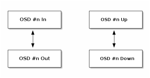 An OSD is either in service (in) or out of service (out). An OSD is either running and reachable (up), or it is not running and not reachable (down).